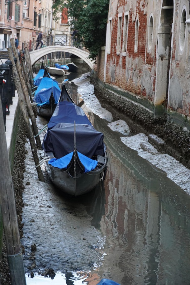 Зазвичай Венеція потерпає від повеней, але в цьому році через рекордні відливи багато венеціанських каналів залишилися без води, повідомляє Кореспондент із посиланням на BBC.