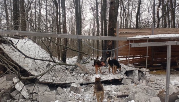 Зазначається, що в результаті потрапляння снаряду зруйновано 5 вольєрів та загинуло 5 собак, 6 отримали поранення і ще 5 тварин утекли. На всій території центру уламки стін та поламані дерева.