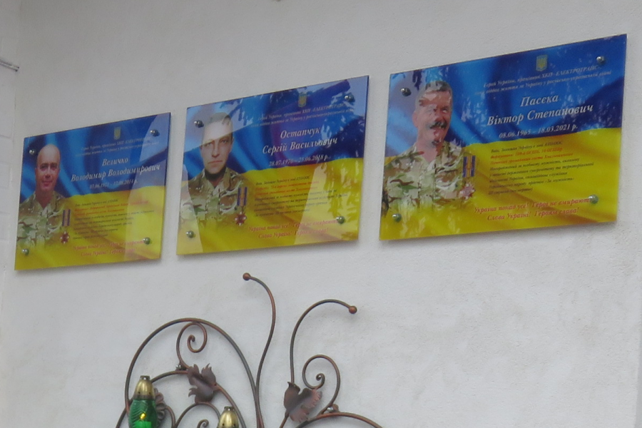 Днями у Хмельницькому на фасаді будівлі ХКП «Електротранс» відкрили меморіальні дошки трьом працівникам цього підприємства, які загинули у російсько- українській війні – Віктору Пасєці, Сергію Остапчуку та Володимиру Величку.