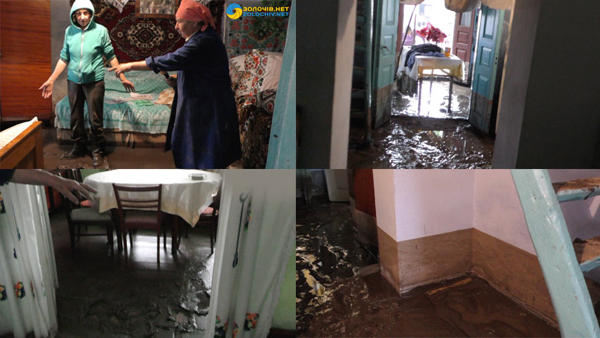 Зі сльозами на очах пані Марія, мешканка села Гологори, що на Золочівщині показує наслідки негоди. Жінці затопило хату, господарські будівлі, городи. Велика вода колодами дерев підперла двері в будинку, пані Марія не могла вийти. На допомогу пришли сусіди, приїхали родичі. Жахіття, що наробила негода просто шокує. У чепурно вбраних вишивками кімнатах на стінах залишив відбиток рівень брудної води, а на підлозі намул.
