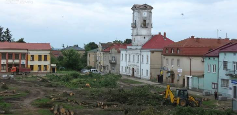 У центрі Городка на Львівщині повністю зрізали дерева у сквері на майдані Гайдамаків. На його місці планують облаштувати нову громадську зону за понад 600 тис. євро — частково за кошти Євросоюзу, частково за гроші місцевого бюджету.