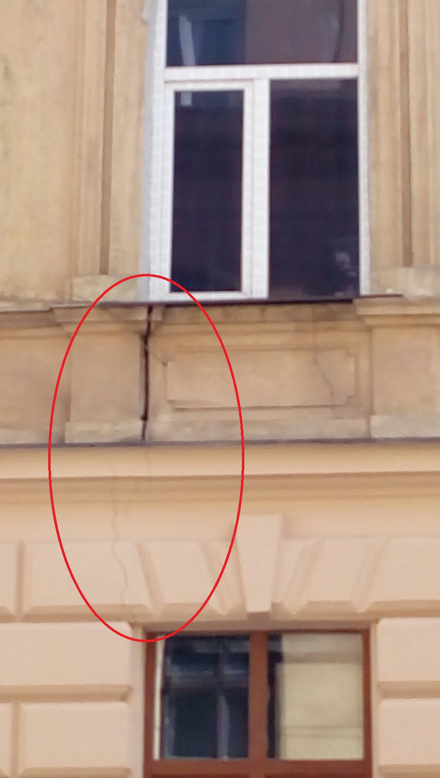 "Кут вулиці Вороного-Ковжуна, 2. Будьте обережні, на тротуар падає цегла. Будинок тріснув з першого по четвертий поверх", – повідомляє львів'янин.