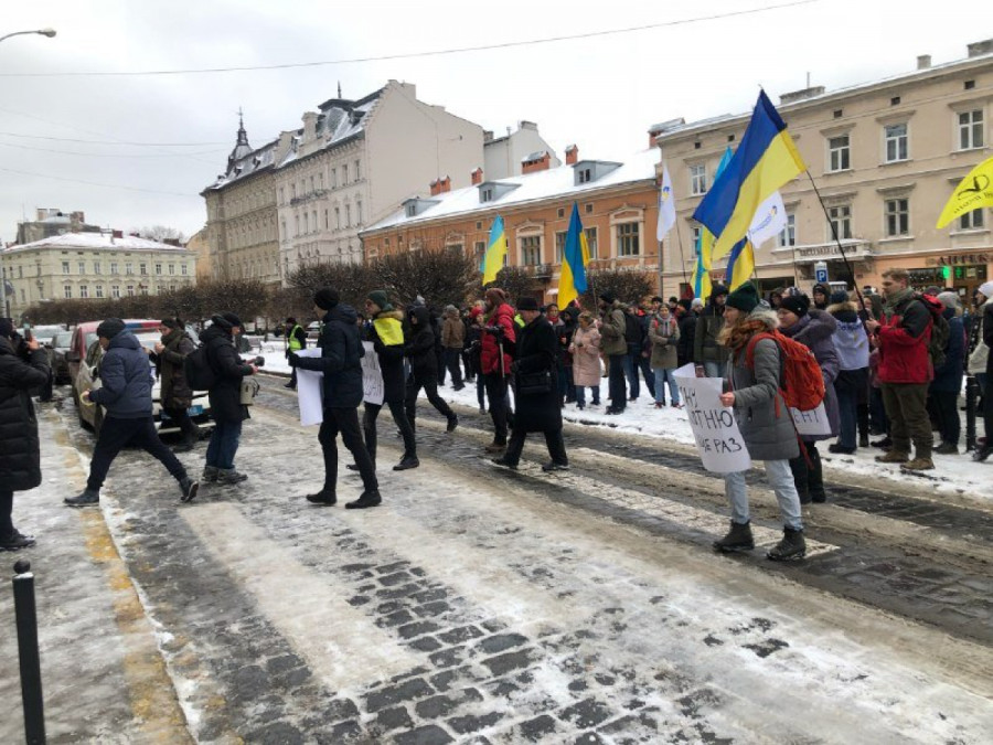У центрі Львова розпочалася акція "Не злий Майдан". Її учасники протестують проти обміну утримуваними особами між Україною та ОРДЛО.