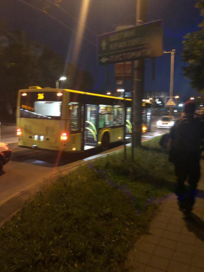 У дописі зазначається, що подія сталася на кільці вул. Кульпарківської (навпроти Ашану) в автобусі №16 сьогодні о 22:45.
