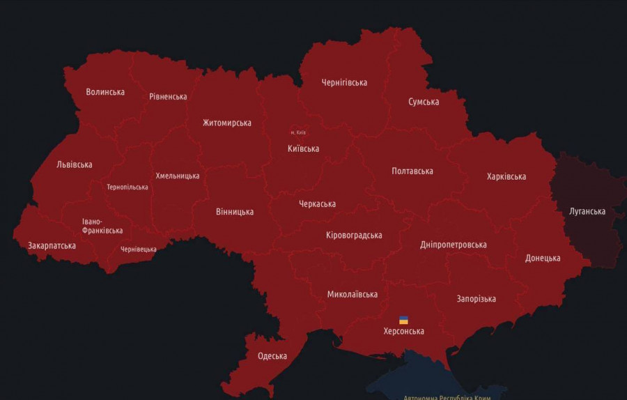 У вівторок, 14 лютого, повітряна тривога оголошена по всій Україні.