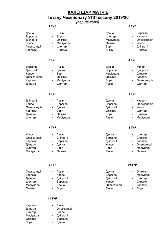 Під час зборів також затвердили календар першого кола І етапу Чемпіонату УПЛ сезону 2019/20 років.