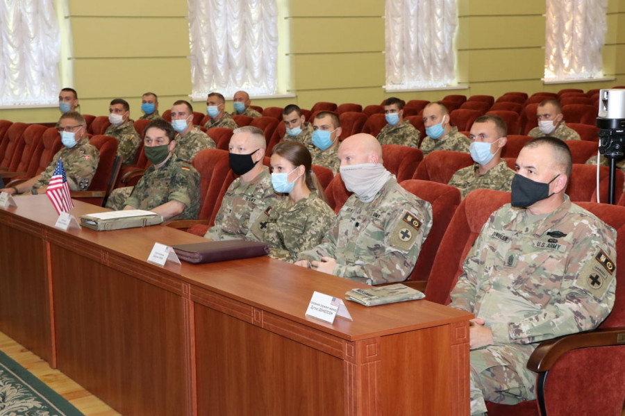 Американські гості також зустрілися із керівництвом навчального закладу. Зокрема було обговорено питання підготовки українських підрозділів в рамках JMTG-U, подальші кроки удосконалення процесу бойового навчання, підготовки офіцерського складу.