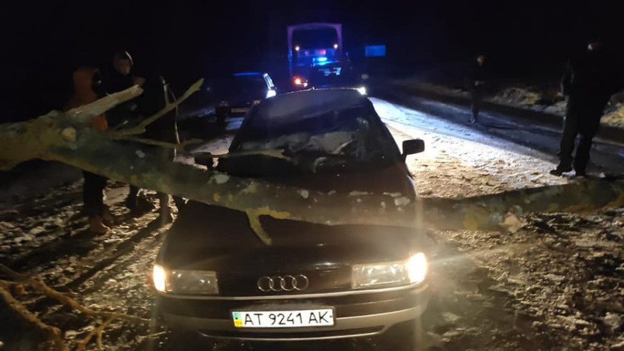 Також поваленими деревами пошкоджено два припарковані легкові автомобілі,а саме в Коломийському районі в селі Ценява. Постраждалих немає.