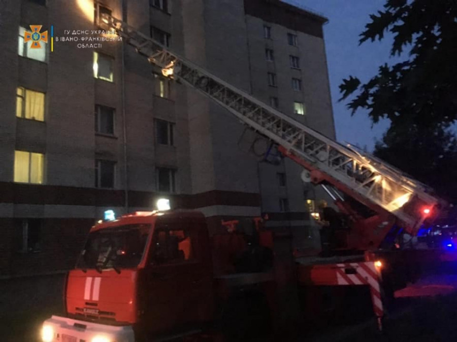 Пожежа зайнялась увечері 30 липня в Івано-Франківську на вулиці Тролейбусній в житловій кімнаті на п’ятому поверсі дев’ятиповерхової будівлі гуртожитку.
