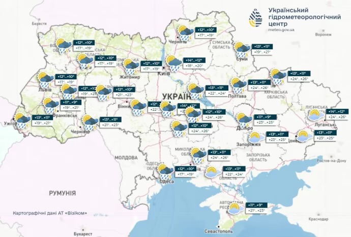 "Повітряна маса із півночі зумовить зниження температури повітря у західних, північних областях та на Вінниччині до +16+20 градусів. На решті території України у вівторок тепла погода ще затримається.