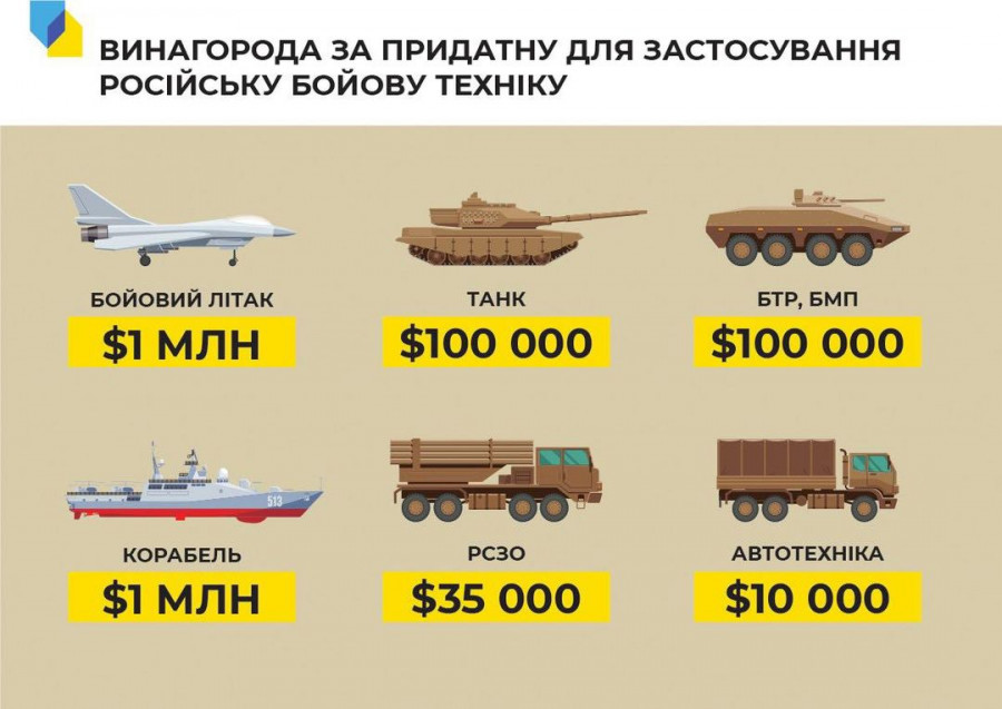 "Винагороду зможуть отримати військовослужбовці збройних сил рф, інші силові структури росії та інші категорії осіб.