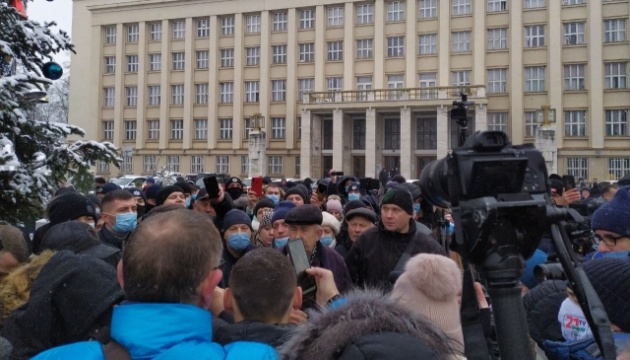 Мітинг під будівлею Закарпатської ОДА / Фото: Mukachevo.net