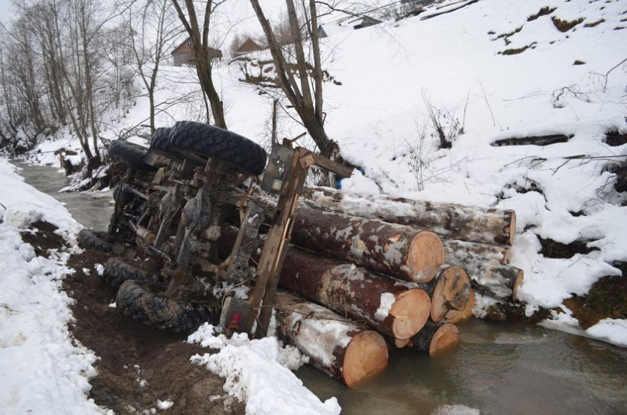 "Про виявлений факт працівники повідомили мобільну рейдову бригаду Ясінянського лісгоспу, яка виїхала на зустріч лісопорушникам збоку селища Ясіня. Втікаючи від переслідування, рухаючись у бік населеного пункту присілку Стебний, вантажівка з деревиною перекинулася у потічок, а невідомі особи зникли з місця аварії" — йдеться у повідомленні.