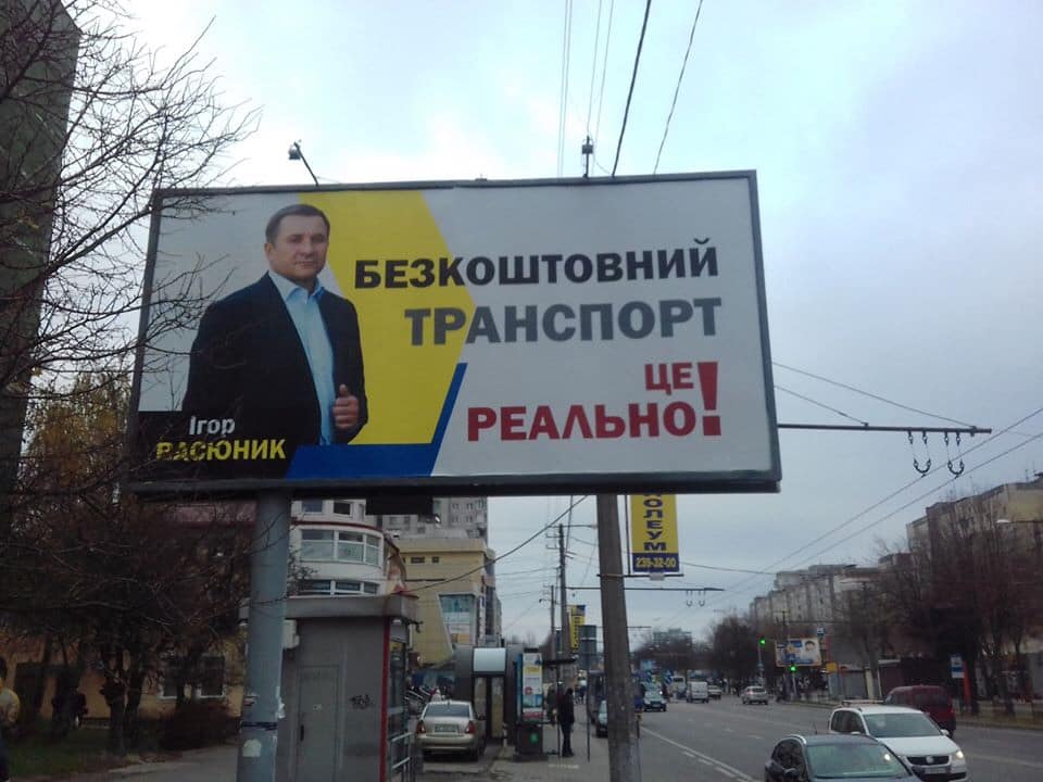 Перед цим Львів був завішаний іншими бордами. На них під зображенням Ігоря Васюнника був напис: «Бешкоштовний транспорт. Це реально».