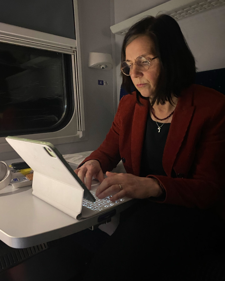 "Київ. Сюди я приїхала сьогодні нічним поїздом. Українці захищають свою країну та нашу спільну свободу. Захоплююсь їхньою мужністю. Найближчими днями я хочу отримати уявлення про відновлення, гуманітарну ситуацію та важке повсякденне життя", – написала вона у твіттері в середу.