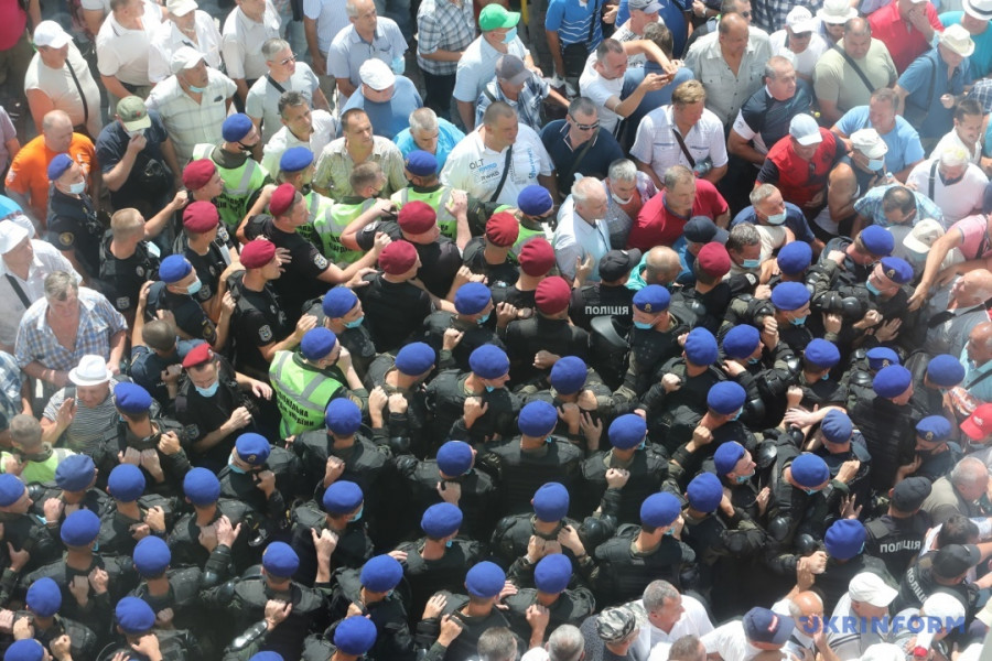 Близько п’ятисот учасників мітингу скандують "Ганьба" і намагаються прорватися до другого під’їзду парламенту. Їм перешкоджає колона представників правоохоронних органів. Між мітингувальники та правоохоронцями час від часу відбуваються сутички, ініціаторами яких виступають учасники акції.