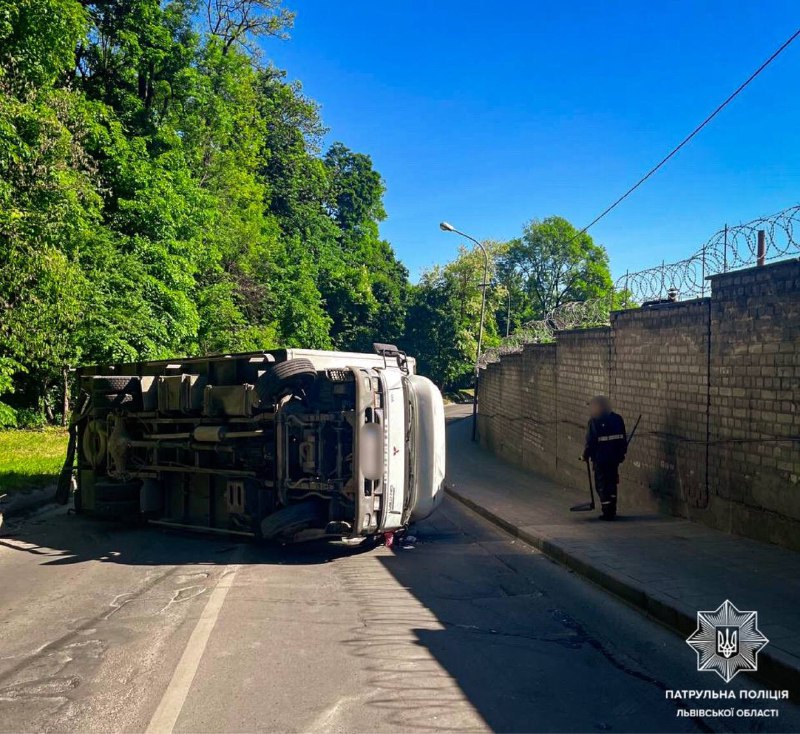 На вулиці Замковій у Львові у напрямку вулиці Опришківської ускладнений рух внаслідок перекидання вантажного автомобіля.