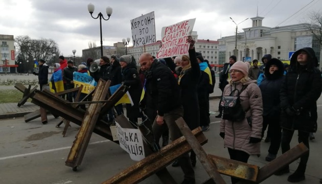 Як повідомлялося, на Херсонщині жителі регулярно проводять мирні акції протесту проти російського агресора, російські військові застосовують силу та зброю проти людей, є поранені та затримані. Також російські загарбники викрадають жителів області.
