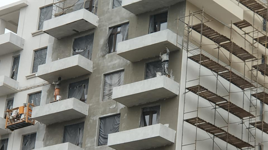 За словами Віталія Білоуса, будівельники працюють без страхови на 9 поверсі новобудови.