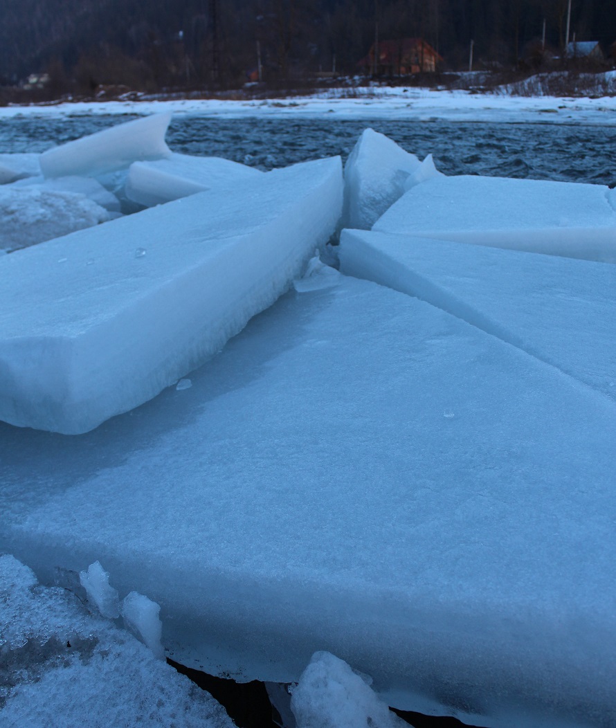 Далі – чарівна Криворівня в обіймах Чорного Черемоша – милуємося щойно скреслою рікою, береги якої вистелені велетенськими крижинами.