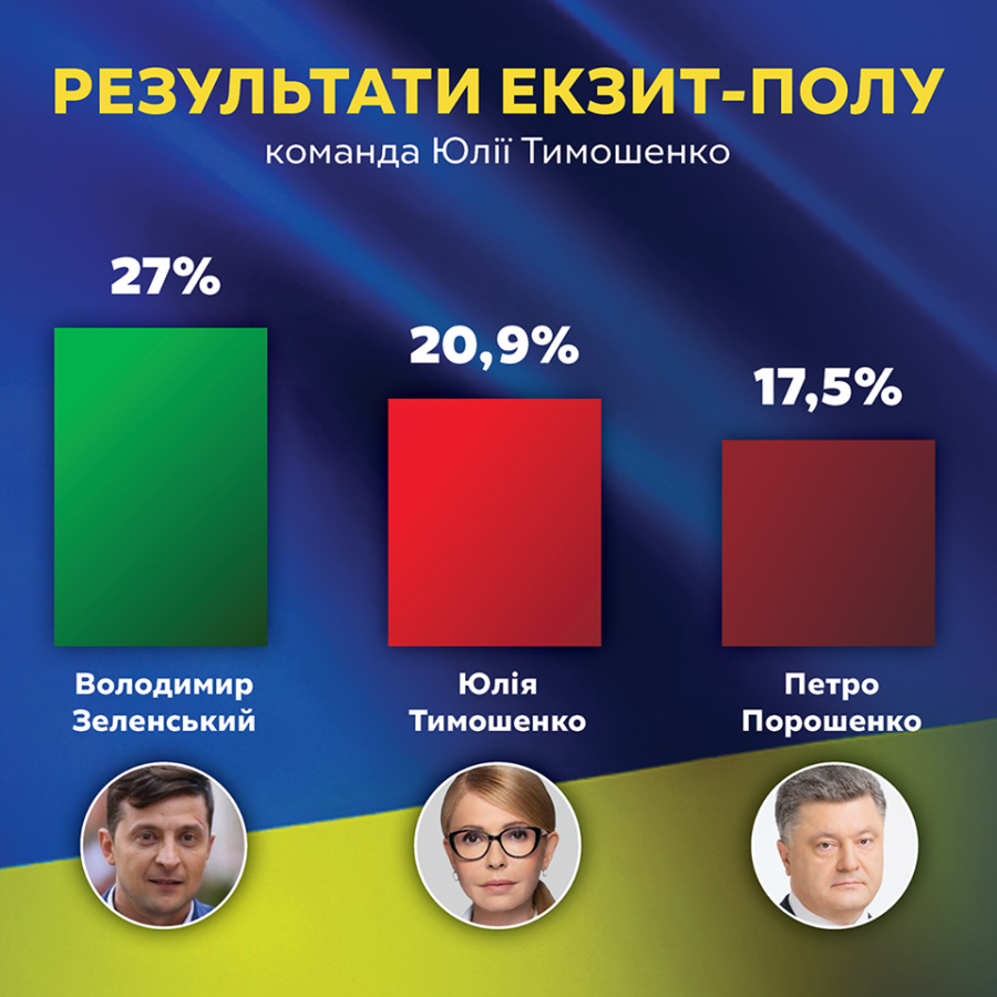 У результаті, перше місце – у Володимира Зеленського (27%), на другому – Юлія Тимошенко (20,9), третє – у Порошенка (17,5%).