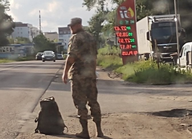 "Сьогодні в мене був яскравий, і трохи сумний день. Їхав з Монастириська до Тернополя, бачу біля заправки "ОККО" в Монастириську голосує солдат з рюкзаком".