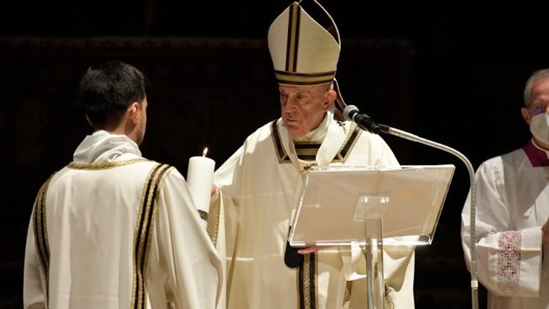 Ввечері, 3 квітня 2021 р., Папа Франциск відслужив у базиліці Святого Петра у Ватикані Святу Месу Пасхального чування, під час якої виголосив проповідь, в якій закликав прийняти Пасхальне запрошення: "Ходімо до Галилеї, де Воскреслий Господь випереджує нас".