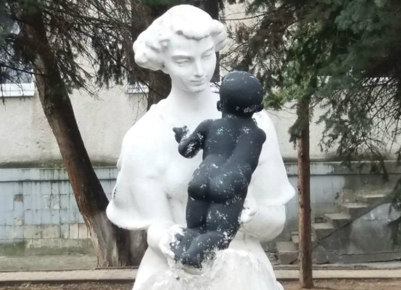 Невідомі пофарбували у чорний колір частину пам'ятника матері та дитині, що розташований біля міського пологового будинку на Сахарова.