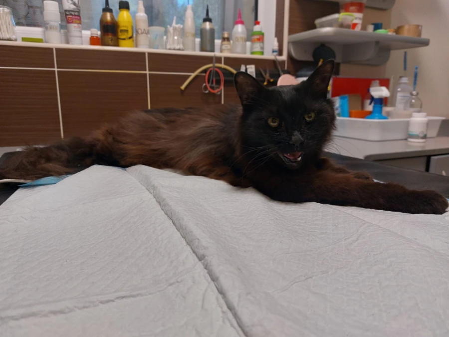 "Домашній улюбленець пані Олі та друг нашої раніше врятованої собачки Аліси. Щастя, що пані Оля була в дворі, одразу впізнала свого Черчиля. Ми разом завезли його в клініку. Котик обезводнений, втомлений, але має апетит", – написала Кошак.
