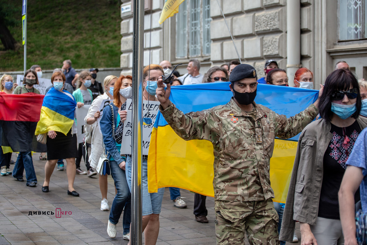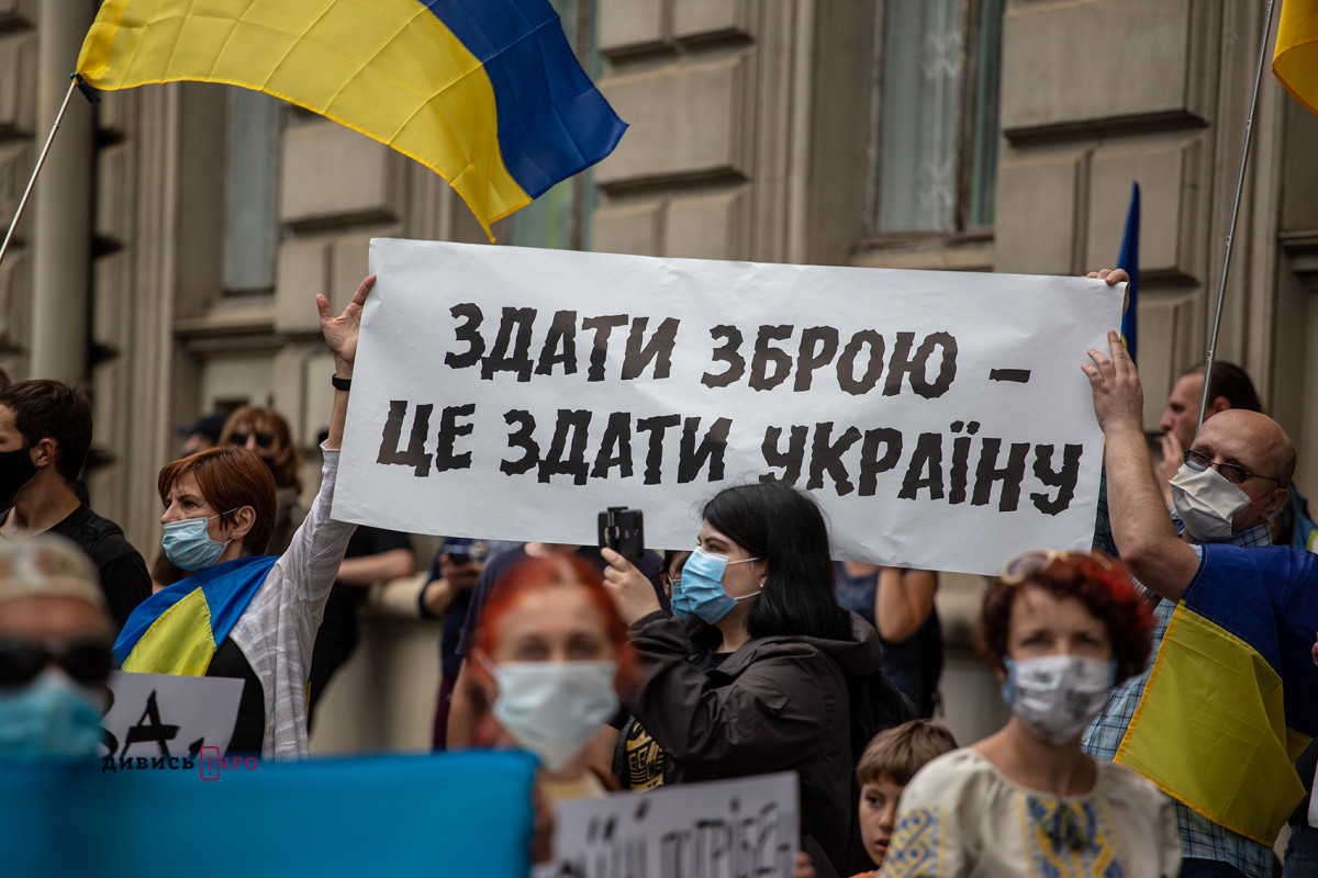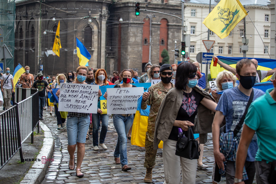 У Львові акція спочатку зібралася на проспекті Свободи, звідки колона з кількох сотень учасників рушила до обласної державної адміністрації на вулицю Винниченка. Там мітингувальники вимагали «не роззброювати армію», «захистити ЗСУ» тощо.