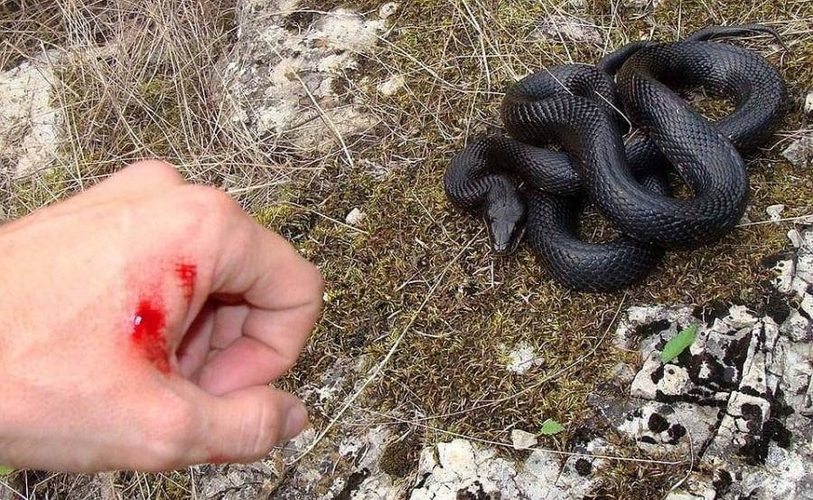 Вирушаючи у ліс краще взувати високе, щільне взуття, котре змія не прокусить".