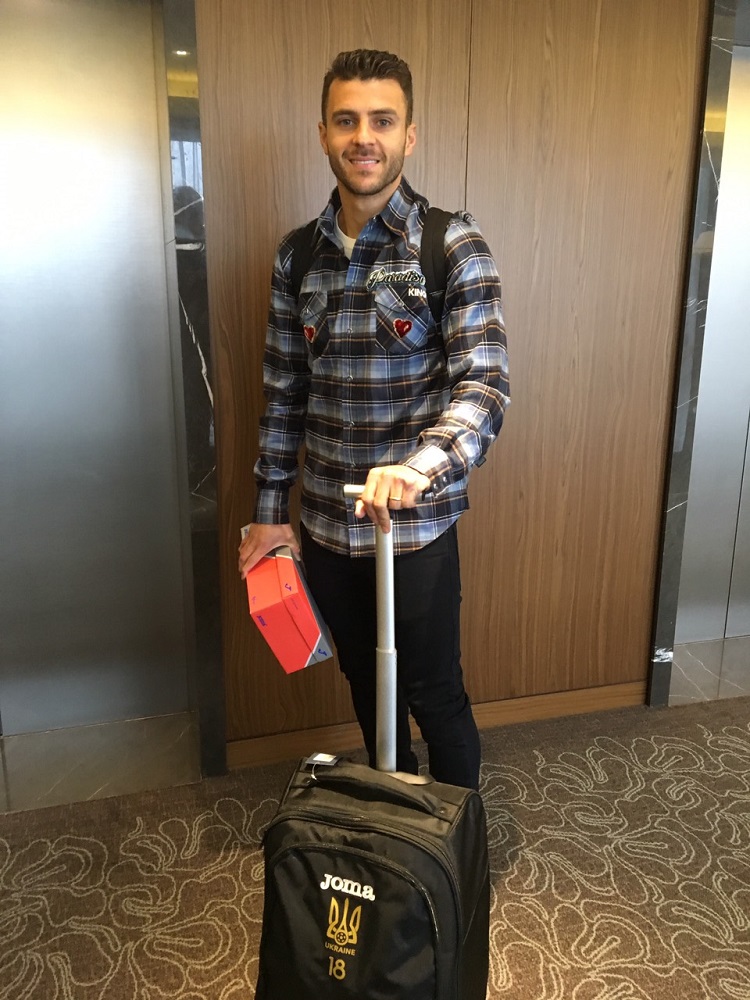 Гравця зустріли адміністратори збірної та представники прес-служби ФФУ. Жуніор одразу ж отримав екіпірування — вільним був комплект із 18 номером, що, втім, не означає, що саме такий ігровий номер буде у новачка.