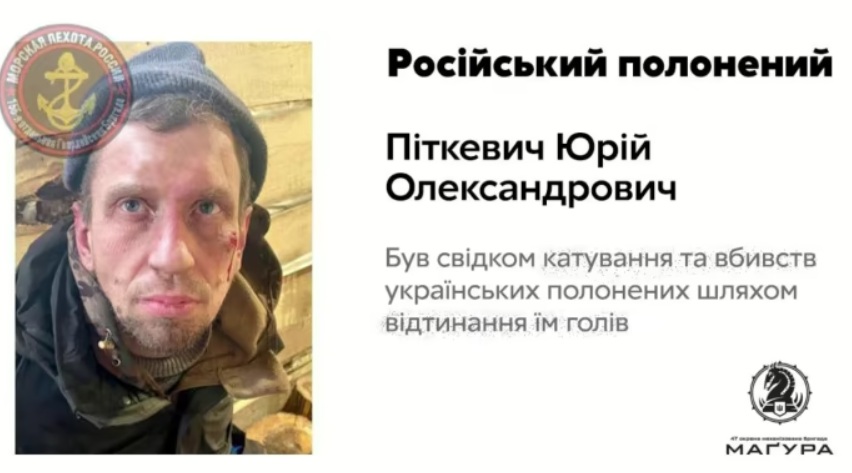 Бійці 47-ї окремої механізованої бригади ЗСУ захопили в полон російського солдата Юрія Піткевича, який служив у 155-й бригаді морської піхоти Тихоокеанського флоту РФ. Піткевич заявив, що став свідком страти двох українських військовополонених у вересні 2024 року.