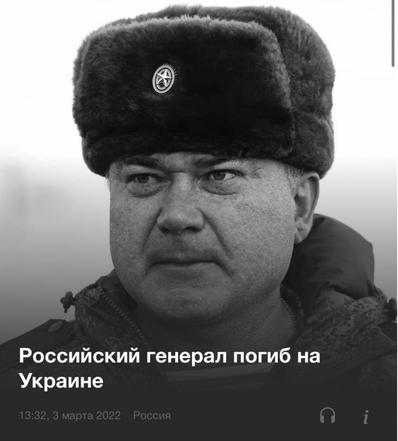 "Першого російського генерала окупанта знищено в Україні на території Чернігівської області. Приготуватись іншим! Або, панове генерали, доповідайте на гору, що вторгнення в Україну - це кривава авантюра, яка погубить Росію, якщо її не зупинити негайно! Україна – це ваш Афганістан. Тільки 10 років до розвалу Росії чекати не доведеться!", - написав радник міністра внутрішніх справ України Антон Геращенко.За темою