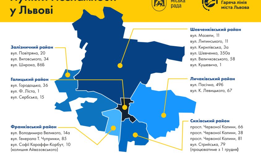Дізнатися про розташування пунктів обігрівання можна, зокрема, за допомогою інтерактивної карти на сайті Львівської міської ради: https://city-adm.lviv.ua/nezlamnist .