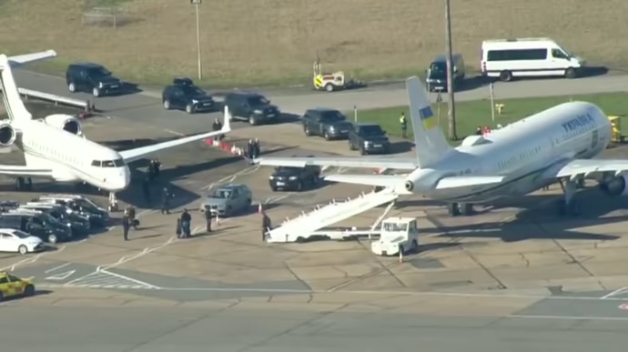 Sky News публікує відео в аеропорту літака української делегації, яким, як вважають, прибув український президент.