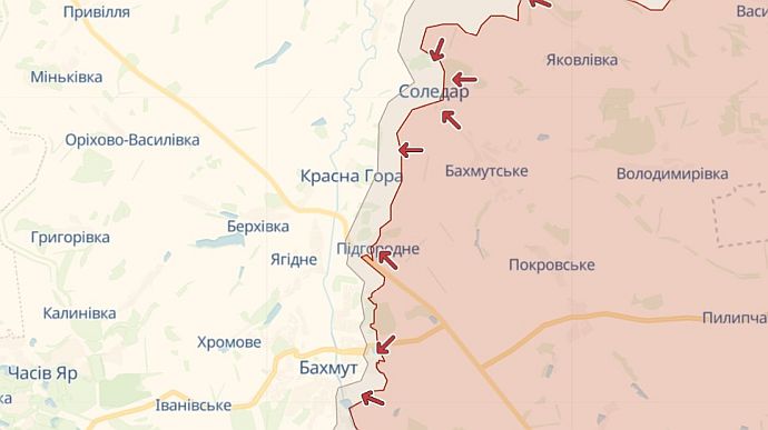 "Бахмут тримається попри все. І хоча більша частина міста зруйнована російськими ударами, наші воїни відбивають там постійні спроби російських наступів. Соледар тримається. Хоча там іще більше руйнувань і дуже тяжко… Немає такого клаптика землі біля цих двох міст, на якому б не віддав своє життя окупант за божевільні ідеї господарів російського режиму. Це одне з найбільш кривавих місць на фронті", – сказав президент.