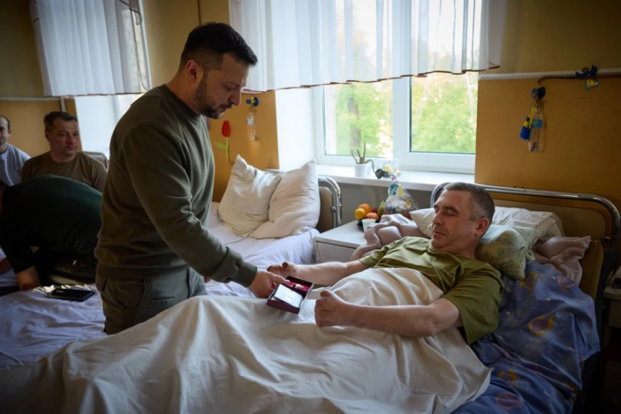 Володимир Зеленський відвідав поранених військовослужбовців, поцікавився станом їхнього здоров’я та умовами лікування. Він також вручив ордени "За мужність" ІІІ ступеня та медалі "За військову службу Україні" військовослужбовцям ЗСУ та Державної прикордонної служби, які зазнали поранень на сході, зокрема під час оборони Авдіївки, Мар'їнки та Часового Яру, на Бахмутському напрямку.