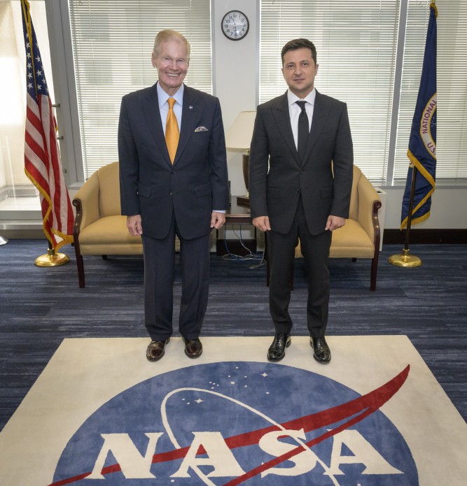 Український президент сьогодні також зустрівся з директором американського космічного агентства NASA Біллом Нельсоном та запросив його в Україну. Зеленський заявив про готовність України співпрацювати з США в рамках проектів "Антарес" та "Артеміда".