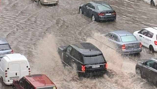 Після сильної зливи деякі київські вулиці перетворилися на річки.