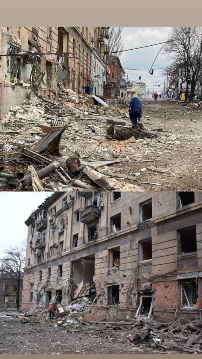 "Протягом двох тижнів війни російський ворог знищував Маріуполь: обстрілював з артилерії і танків, скидав ракети і морив голодом мешканців, які там залишились.
