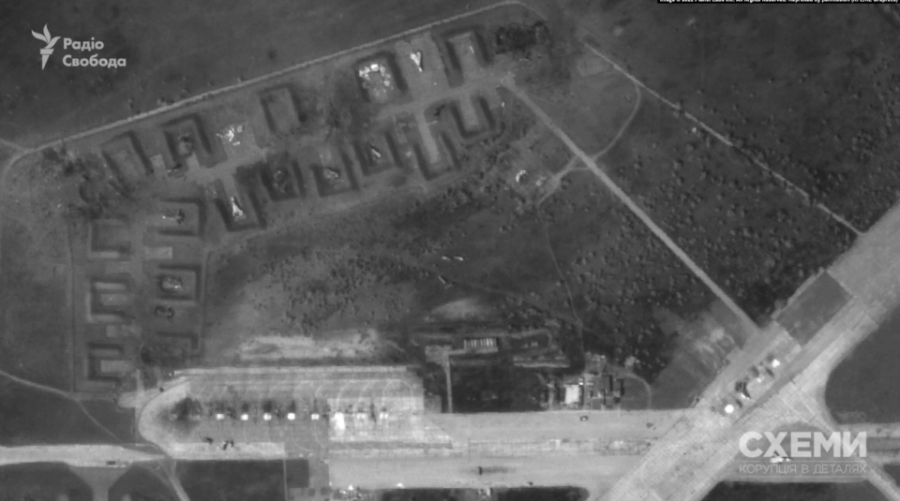 Загалом, судячи з супутникового знімка, були уражені щонайменше 9 літаків, а також приміщення, схожі на склади.