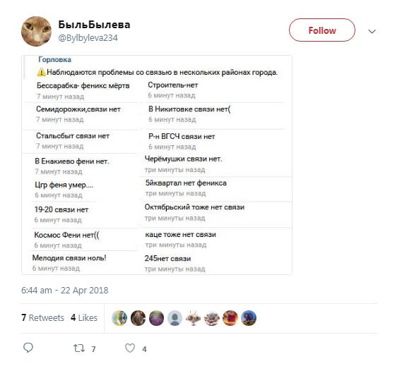Користувачі соцмереж повідомляють, що покриття зникло 22 квітня у Горлівці, Макіївці та Єнакієві.