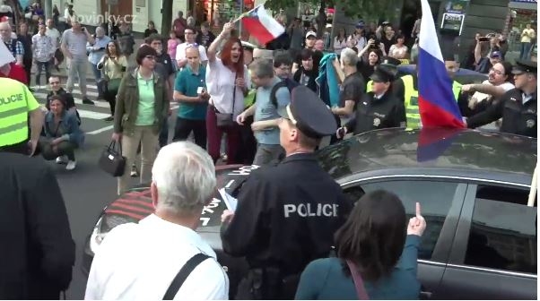 Під час проведення мітингу стався інцидент з російськомовними громадянами, які мешкають у Празі і вирішили відзначити День Перемоги автопробігом центральними вулицями столиці.