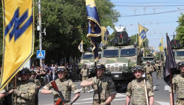 Розпочалися святкування проведенням військового параду бойової техніки, а також пішої колони військовослужбовців АЗОВу. Цього дня разом із "азовцями", які були основною ударною силою під час операції 13 червня 2014 року зі звільнення міста, крокували бійці Нацгвардії, морської піхоти, 56-ї окремої мотопіхотної бригади, Донецького прикордонного загону, Маріупольського загону морської охорони та працівники поліції ГУНП в Донецькій області.