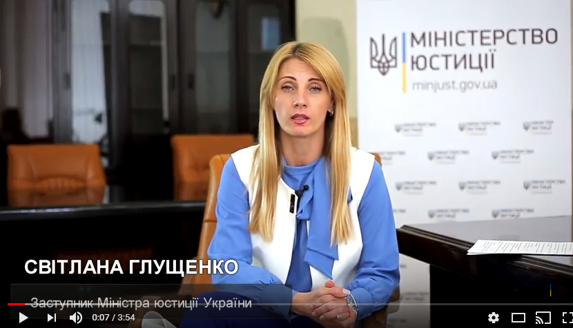 Про це повідомила заступниця Міністра юстиції Світлана Глущенко у відеоблозі на YouTube.