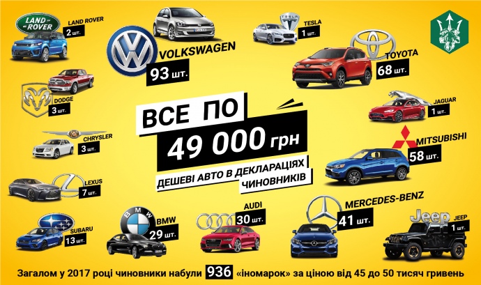 Їхнє дослідження показало, що у 2016-на початку 2017 року декларанти придбали 936 іномарки за ціною від 48 до 50 тисяч гривень.