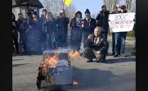 На місці проведення акції учасники розмістили картонний автомобіль - імпровізовану "євробляху" - яку символічно спалили, вимагаючи доступного розмитнення.
