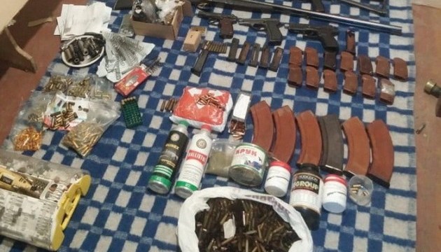 Під час обшуків за місцем проживання зловмисника співробітники СБУ вилучили автомат Калашникова з глушником, мисливську рушницю DARCE TOURS, три пістолети, понад дев’ятсот набоїв різного калібру та вісім магазинів для різних видів зброї.