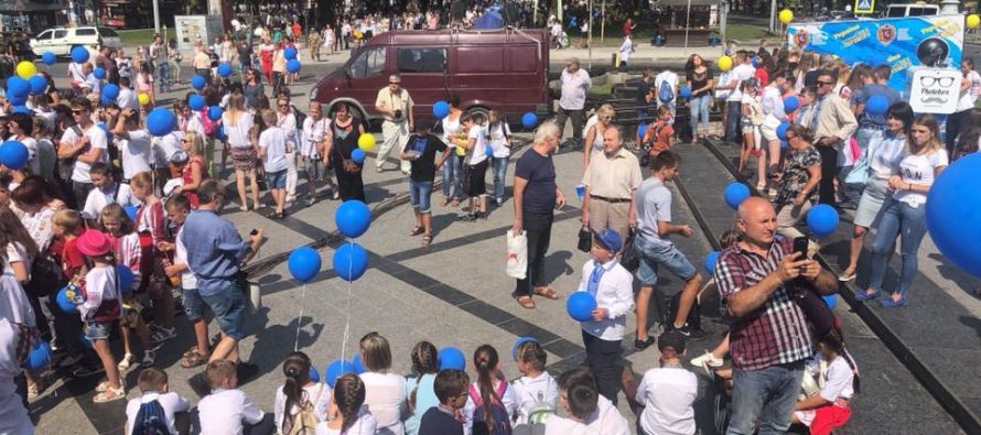 Дітей таки звезли до Львова з області. Не вийшло по 50 з району. Тисячі не було. Збирали освітяни дітей як могли, бо то було непросто. В деяких районних центрах школи відмовилися від цього абсурду. То з сіл позвозили. Школярики в 11:00 мали прибути до Львова, до церкви Юра. Флеш-моб з кульками відбувся в 12:56.